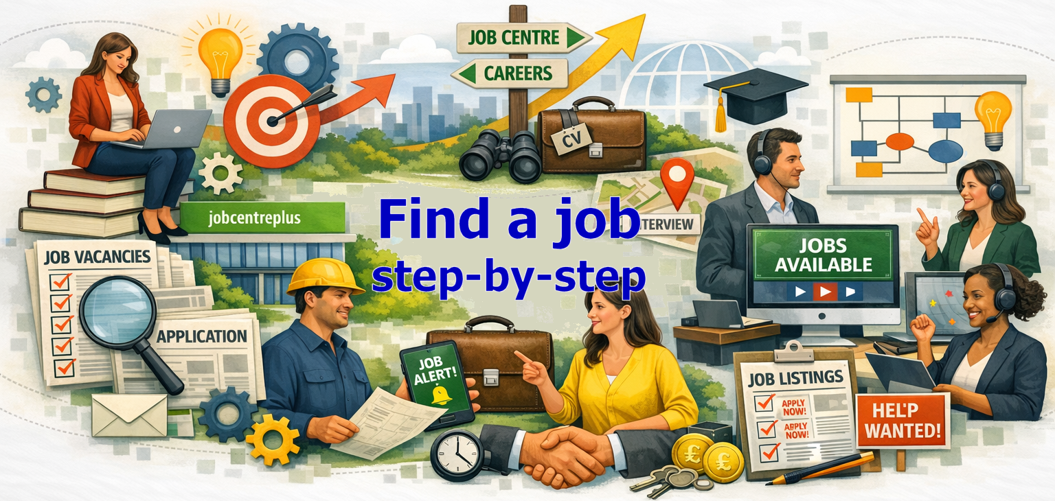 Find a job – step-by-step: A guide to the government’s Find a job system that takes you through the steps of setting up your account and managing it. Other useful areas like covering letters and creating CVs (with templates) and searching for jobs are also covered.