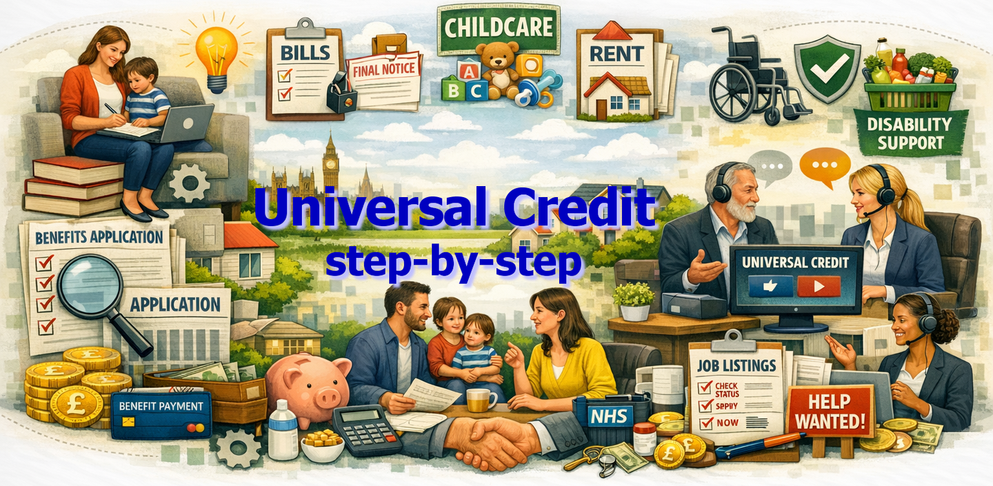Universal Credit – step-by-step: A guide that helps users navigate the Universal Credit system which takes you through the steps of setting up your account, how much will be paid and when it will be paid. Other useful areas like budgeting and, for those new to computing, basic computer skills are also covered.