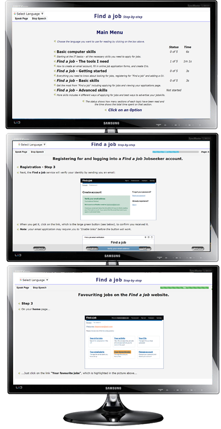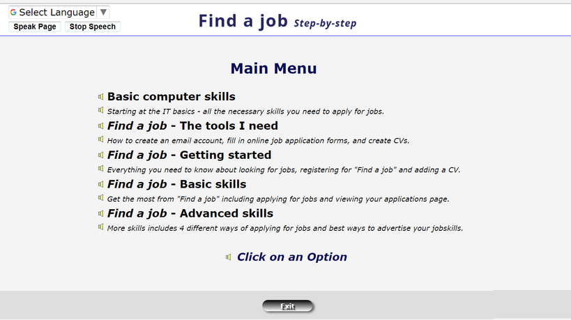 Find a job – step-by-step: A guide to the government’s Find a job system that takes you through the steps of setting up your account and managing it. Other useful areas like covering letters and creating CVs (with templates) and searching for jobs are also covered.